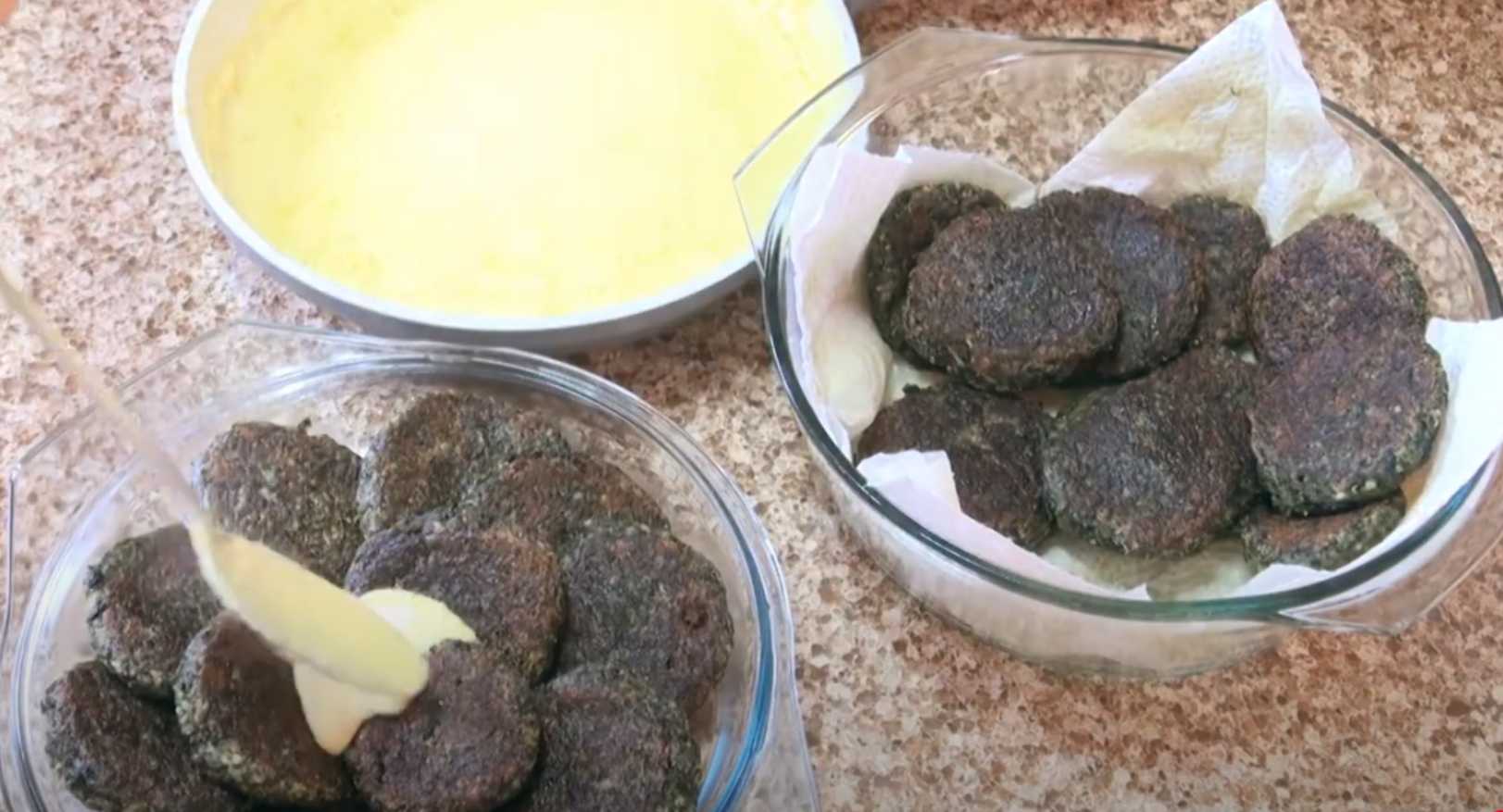 10. כאשר הכופתות השחימו ומוכנות, מוציאים אותן לקערה עם נייר סופג ומטגנים את שאר העיסה.